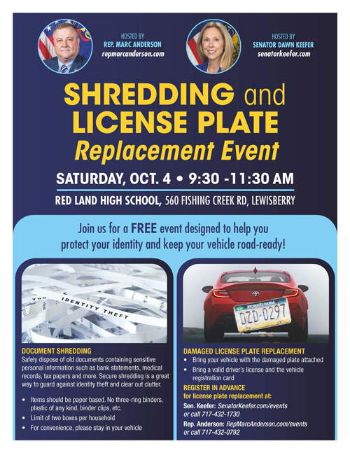 Please join me and Rep. Barb Gleim (R-Cumberland) for a forum where attendees can ask questions and get updates on legislation and issues currently before the PA House of Representatives. Please RSVP here.